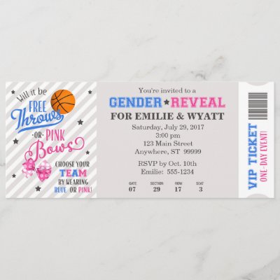 Free Throws or Pink Bows Gender Reveal Ticket Invitation
