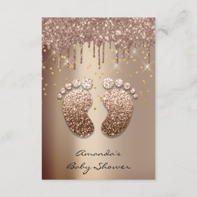 Ad: Spark Glitter Drips Rose Gold Baby Shower Foot Invitation