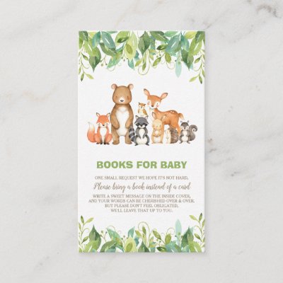 Ad: Woodland Animals Greenery Forest Boy Bring a Book Enclosure Card