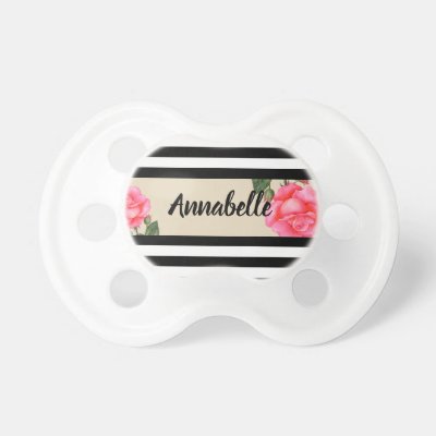 Ad: Pink Rose Botanical Illustration Pacifier