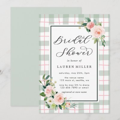 Ad: Watercolor Bloom | Pastel Plaid Bridal Shower Invitation