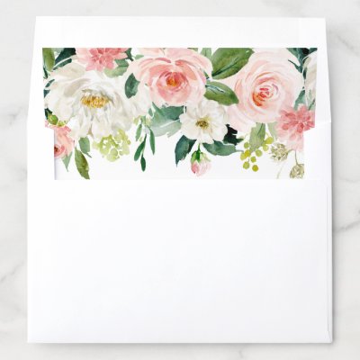 This elegant envelope liner featuring painted watercolor flowers in blush pink white and green foliage. Matching items are also available. myBabyBloom