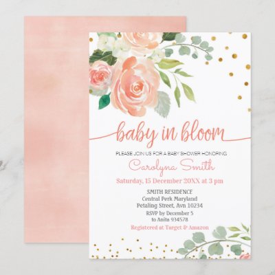 Pink Floral baby in Bloom Shower Invitation myBabyBloom