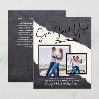 She Said Yes - Photo Engagement Party Invitation