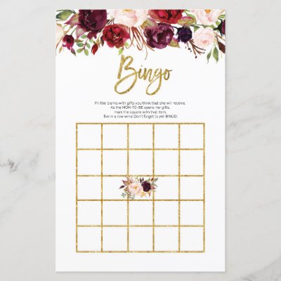 Red Marsala Watercolor Bingo Game myBabyShower