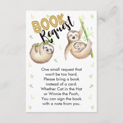 Sloth baby shower book request card 3.5x5" myBabyShower