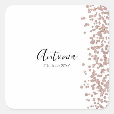 A simple and elegant sticker that is easy to customize for many different celebrations. Add your name in a black handwritten font and the date in a modern typeface below. A splash of pink confetti decorates the right hand side. myBabyShower
