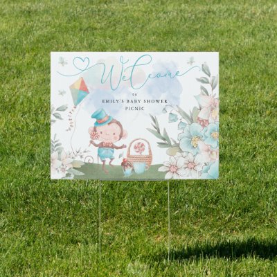Welcome Monkey Boy Baby Shower Picnic Sign
