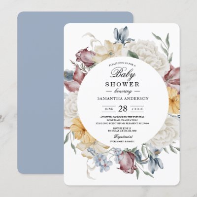 Winter Elegant Watercolor Flowers Frame myBabyShower